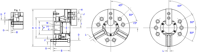 Standard Equipment: Chuck assembled with adapter, chuck mounting bolts, soft top jaws, T-nuts and jaw mounting bolts with wrench, draw nut wrench.