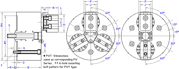 *PWT - Dimensions same as corresponding PW Series. **6-hole mounting bolt pattern for PWT type.